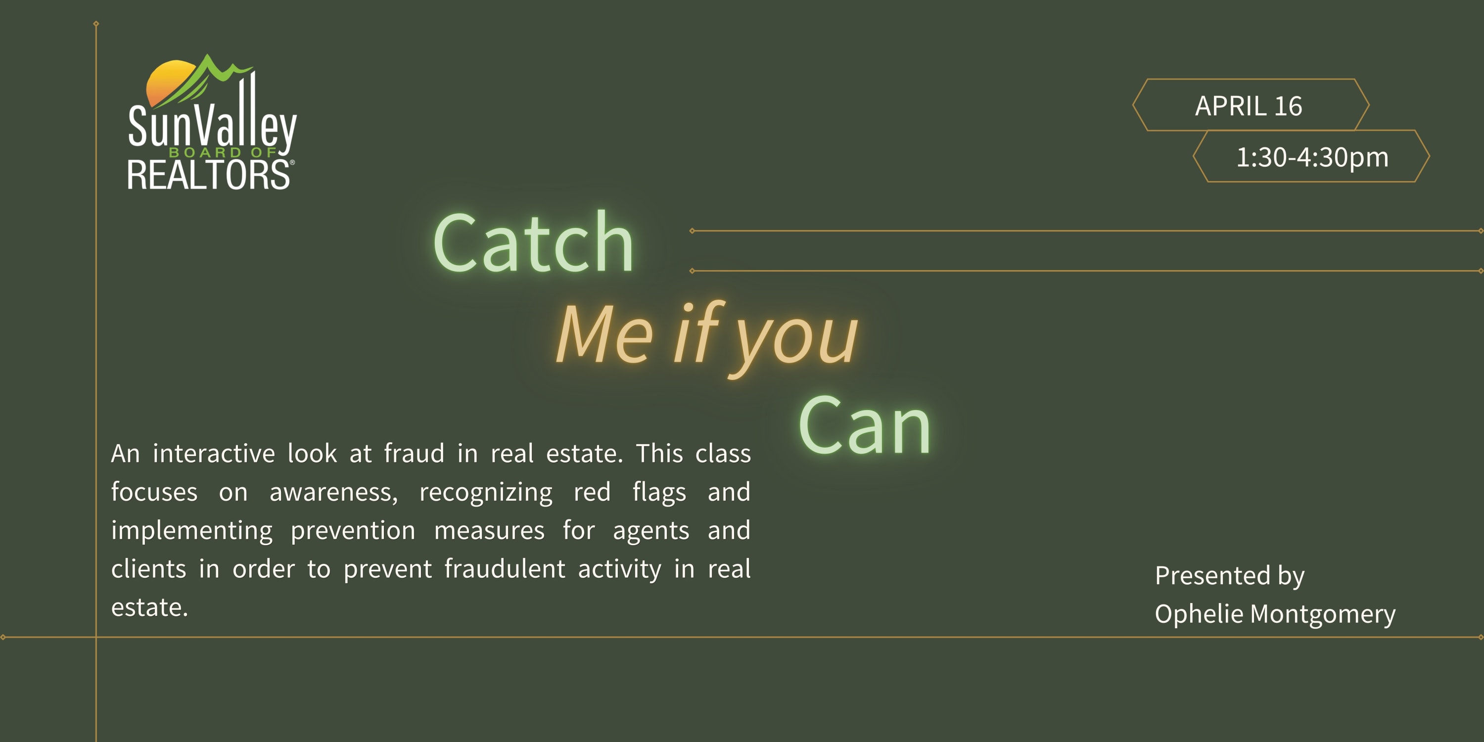 An interactive look at fraud in real estate. This class focuses on awareness, recognizing red flags and implementing prevention measures for agents and clients in order to prevent fraudulent activity in real estate.